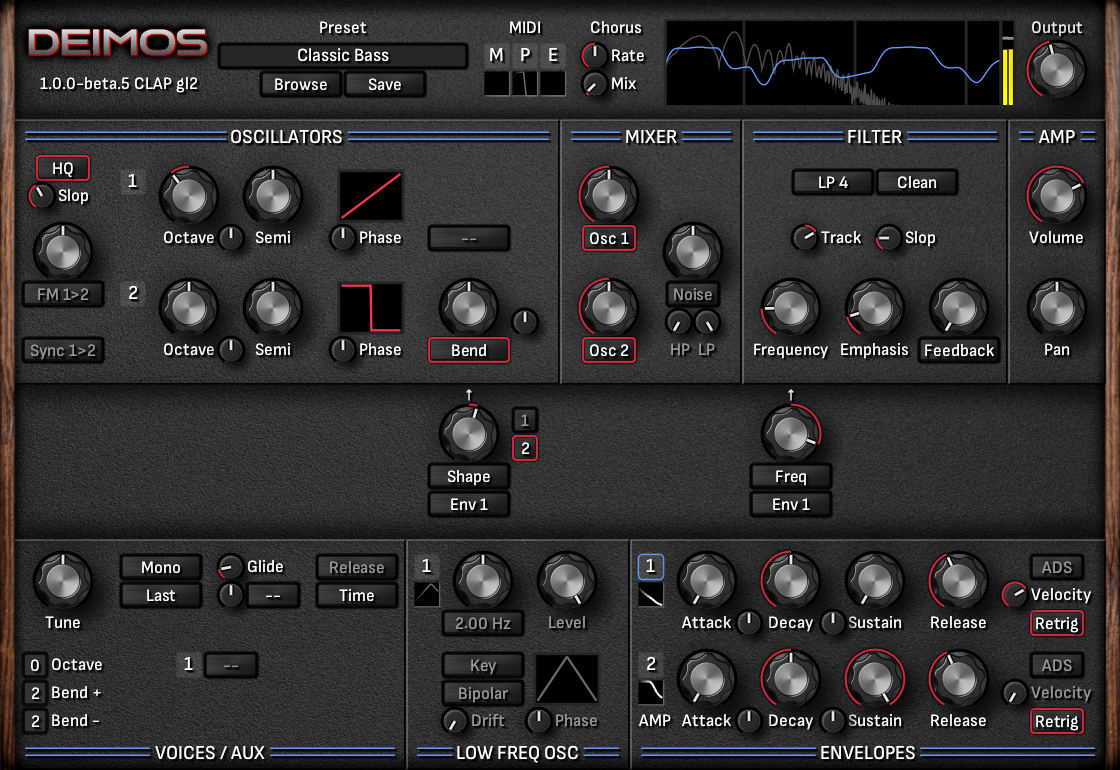 Deimos is a free synthesizer plugin focusing on high quality sound and ease of use.